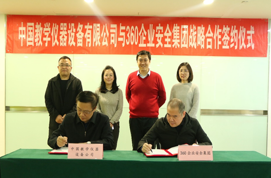2019年1月21日,中國教學(xué)儀器設備有限公司與360企業(yè)安全集團簽署戰略合作協(xié)議。中教儀公司副總經(jīng)理夏國明、360企業(yè)安全集團副總裁何新飛出席簽約儀式。雙方將在基礎教育、職業(yè)教育、高等教育領(lǐng)域開(kāi)展網(wǎng)絡(luò )安全人才培養合作,包括設立青少年網(wǎng)絡(luò )安全教育基地、高校產(chǎn)業(yè)網(wǎng)絡(luò )安全專(zhuān)業(yè)建設、人才培養等項目。雙方表示,要充分利用各自?xún)?yōu)勢,加強資源協(xié)同,以合作框架為基礎,不斷拓展合作領(lǐng)域,創(chuàng )新合作項目,扎實(shí)落實(shí)雙方合作協(xié)議。